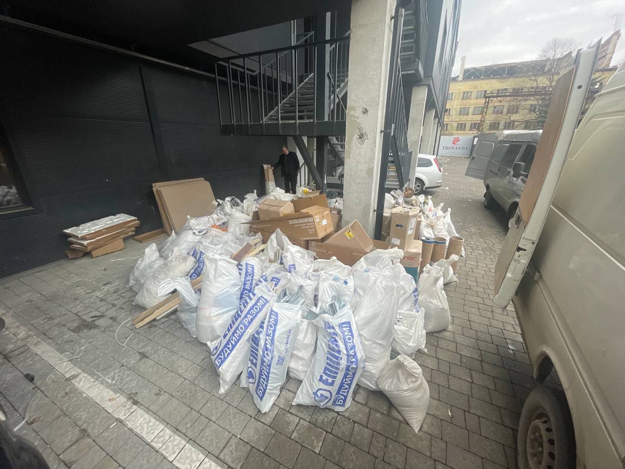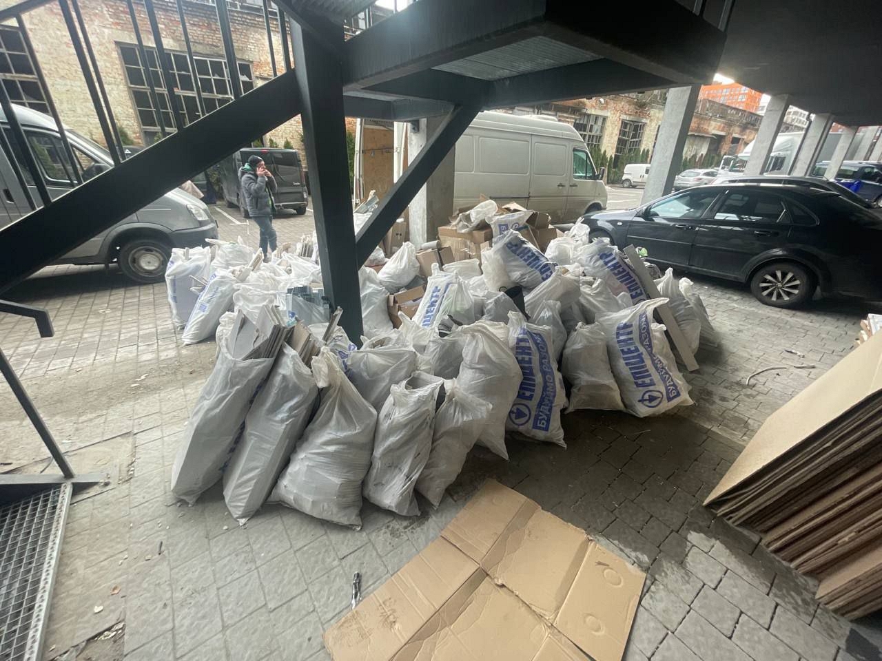 Утилізувати будівельне сміття транспортом компанії "Силач" на території ТОЦ Fabrik.  Необхідно 2 вантажники для роботи. Будівельне сміття розміщується на рівні 1-го поверху та в офісі компанії замовника, потребує упакування в поліпропіленові мішки або інші мішки для будівельного сміття.